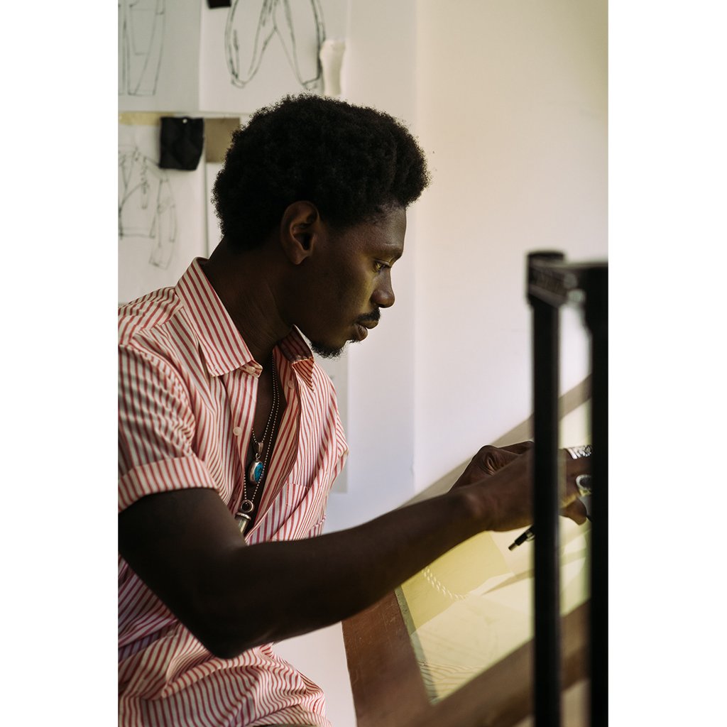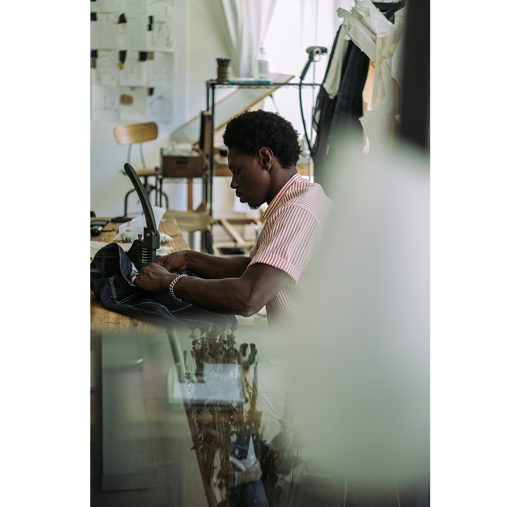 Sebastien’s affinity for lines didn’t prevent him from going outside of them to persevere. He’s navigated in and out of the fashion scene at all levels, couch hopping, taking odd painting & illustration jobs and a range of garment-making apprenticeships to make ends meet, and carve his own lane in clothing.