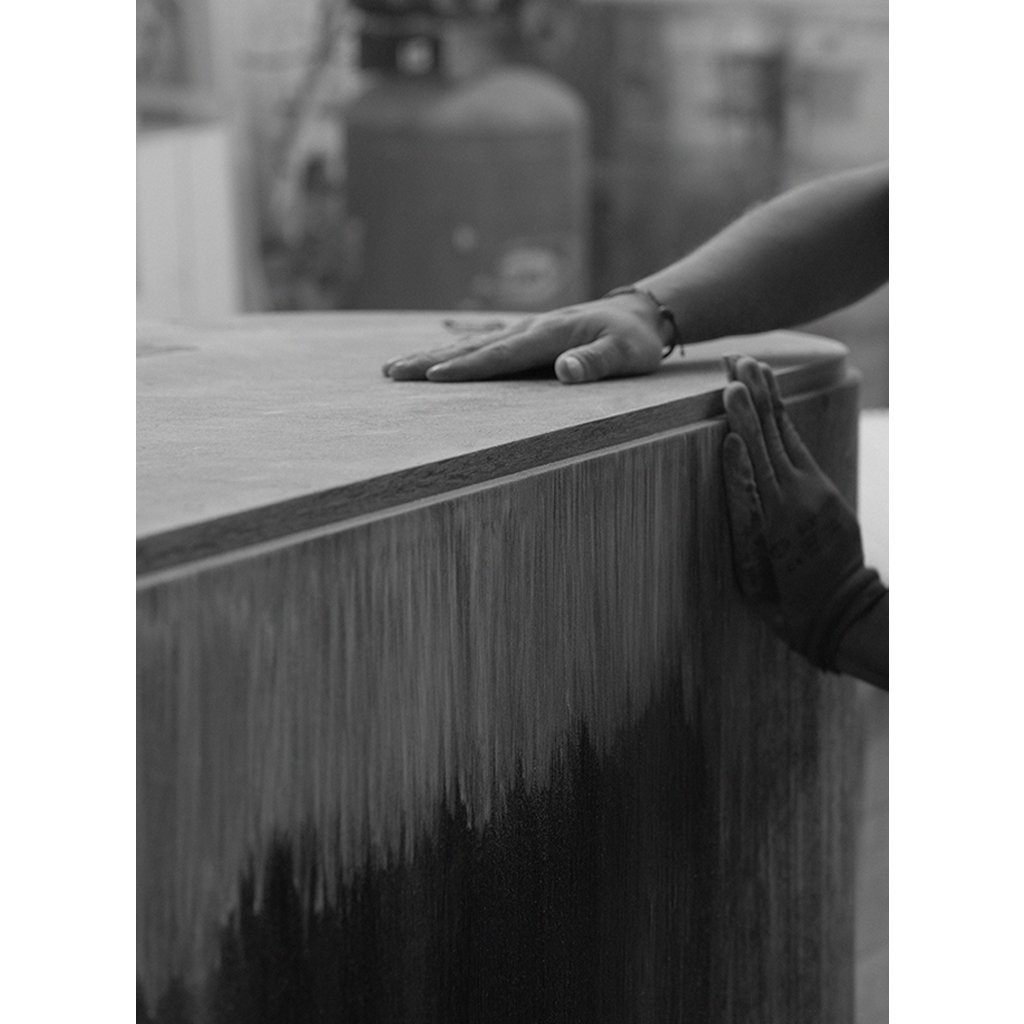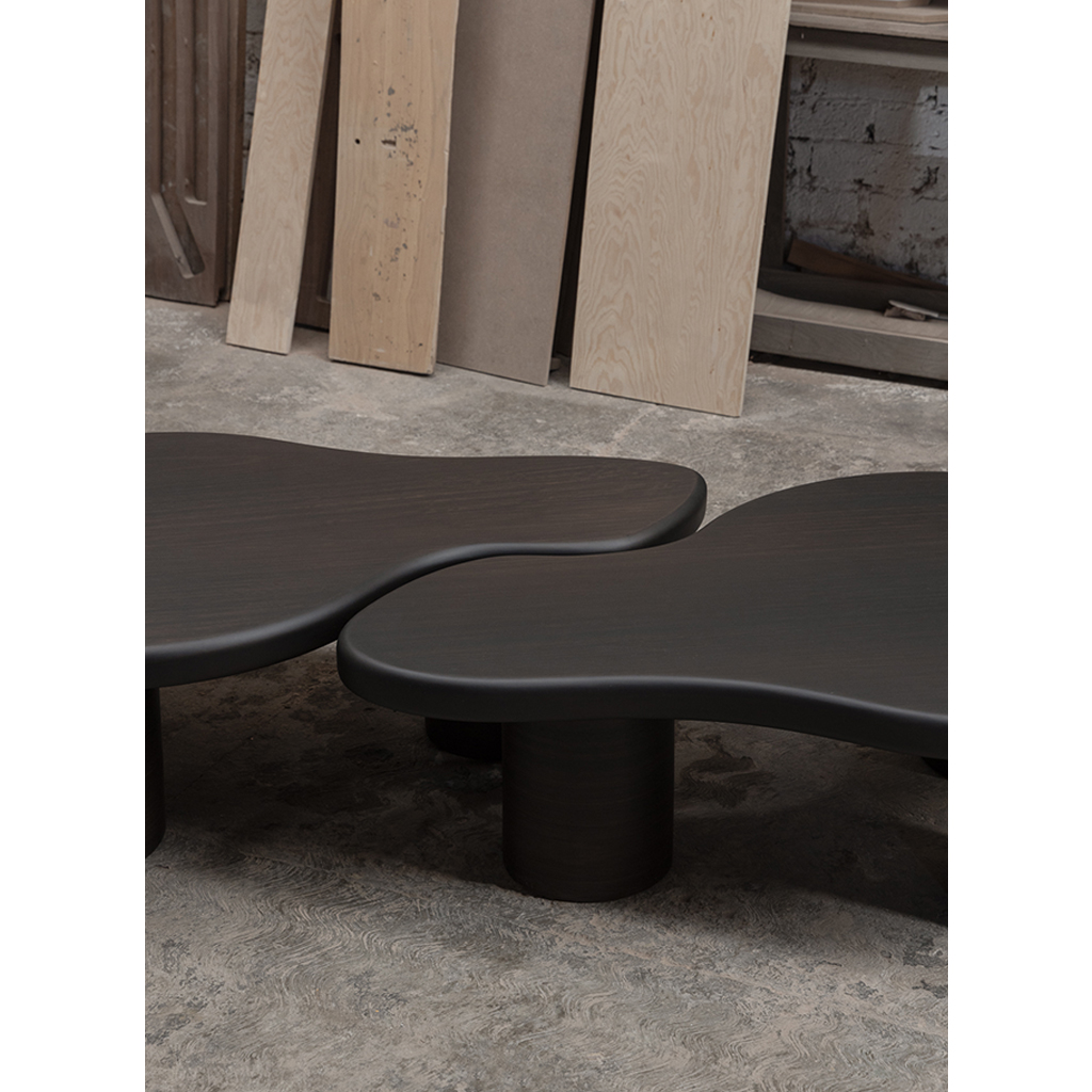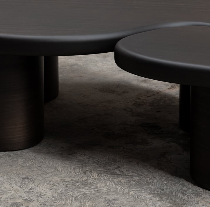These tables are part of the larger RAW collection, they inspired the entire collection. The notion was to embrace the natural properties of raw elements and learn to work with them, using methods performed by hand. There are erosions, and irregularities nothing's perfect, and we're working with the challenges seeking simplicity. It yields an honest and emotional form that just flows.